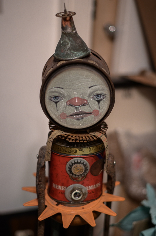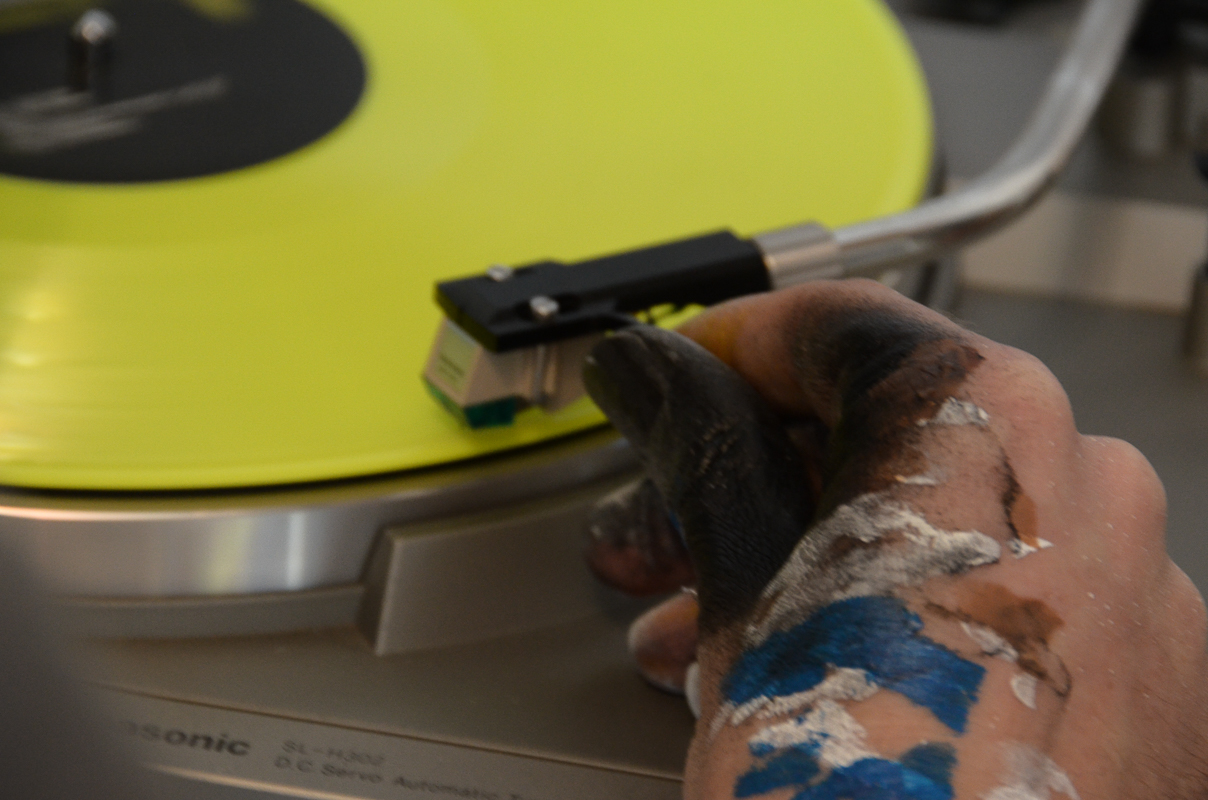 He listens to vinyl records in his studio, and the title of his pieces are always several words from songs’ lyrics.